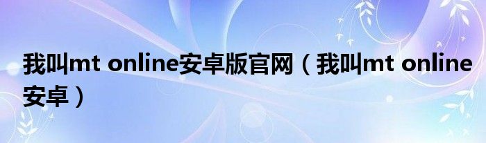大家好,麟非来为大家解答以上问题,我叫mt online安卓版官网,我叫mt online安卓很多人还不知道,现在让我们一起来看看吧!