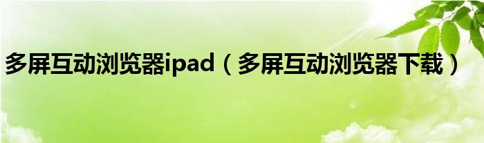 多屏互动浏览器ipad(多屏互动浏览器下载)