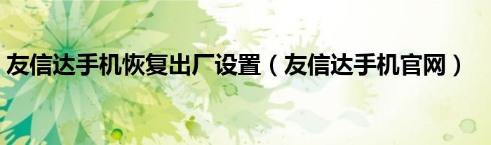 大家好,麟非来为大家解答以上问题,友信达手机恢复出厂设置,友信达手机官网很多人还不知道,现在让我们一起来看看吧!