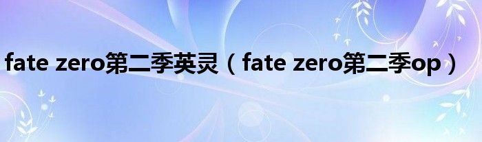 大家好,麟非来为大家解答以上问题,fate zero第二季英灵,fate zero第二季op很多人还不知道,现在让我们一起来看看吧!