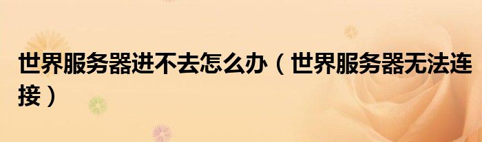 导读 大家好,麟非来为大家解答以上问题,世界服务器进不去怎么办,世界服务器无法连接很多人还不知道,现在让我们一起来看看吧!1、很多玩家反