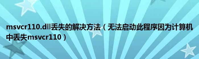 msvcr 110 . dll _ msvcr110.dll修复丢失,计算机出现。这个程序无法启动,因为MSVCR110.dll在计算机中丢失了。尝试重新安装这个程序来解决这个问题,但是这个程序的成功运行需要msvcr110.dll文件的支持。