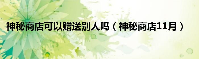大家好,麟非来为大家解答以上问题,神秘商店可以赠送别人吗,神秘商店11月很多人还不知道,现在让我们一起来看看吧!
