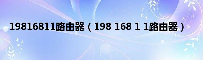 19816811路由器(198 168 1 1路由器)