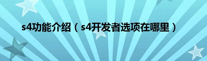 s4功能介绍(s4开发者选项在哪里)