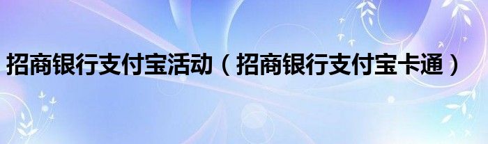 导读 大家好,麟非来为大家解答以上问题,招商银行支付宝活动,招商银行支付宝卡通很多人还不知道,现在让我们一起来看看吧!招商银行快捷支付(
