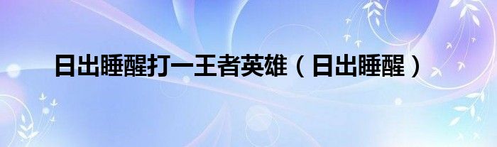 大家好,麟非来为大家解答以上问题,日出睡醒打一王者英雄,日出睡醒很多人还不知道,现在让我们一起来看看吧!