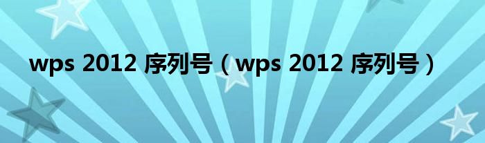 大家好,麟非来为大家解答以上问题,wps 2012 序列号,wps 2012 序列号很多人还不知道,现在让我们一起来看看吧!