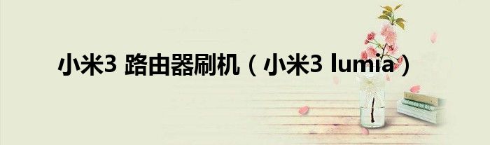 大家好,今天麟非来为大家解答以上问题,小米3 路由器刷机,小米3 lumia很多人还不知道,现在让我们一起来看看吧!