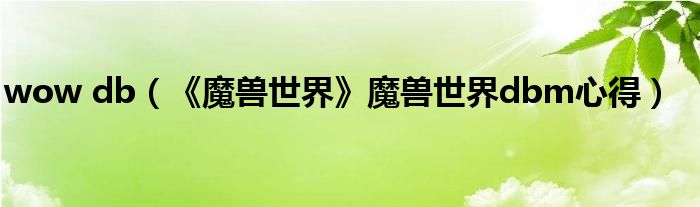 wow db(《魔兽世界》魔兽世界dbm心得)