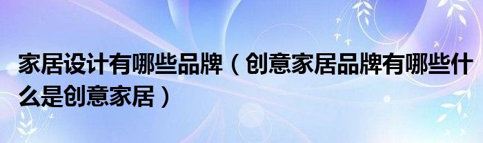 家居设计有哪些品牌(创意家居品牌有哪些什么是创意家居)