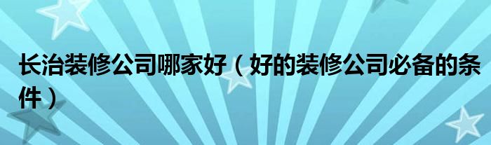 长治装修公司哪家好(好的装修公司必备的条件)