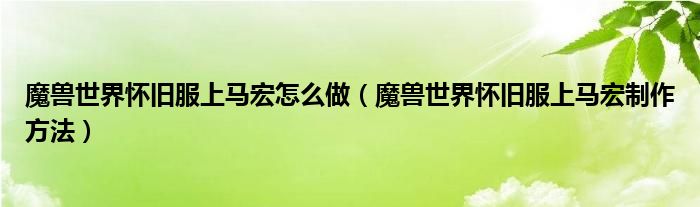 魔兽世界怀旧服上马宏怎么做(魔兽世界怀旧服上马宏制作方法)
