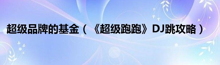 超级品牌的基金(《超级跑跑》DJ跳攻略)