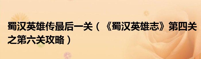 导读 大家好,太太来为大家解答以上问题。蜀汉英雄传最后一关,《蜀汉英雄志》第四关之第六关攻略很多人还不知道,现在让我们一起来看看吧!1、