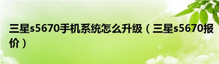 大家好,今天麟非来为大家解答以上问题,三星s5670手机系统怎么升级,三星s5670报价很多人还不知道,现在让我们一起来看看吧!