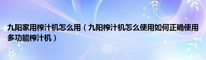 九阳家用榨汁机怎么用(九阳榨汁机怎么使用如何正确使用多功能榨汁机)