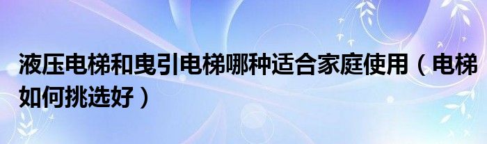 液压电梯和曳引电梯哪种适合家庭使用(电梯如何挑选好)