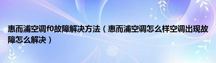 惠而浦空调f0故障解决方法(惠而浦空调怎么样空调出现故障怎么解决)