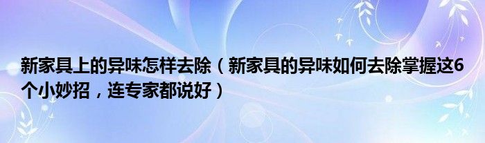 新家具上的异味怎样去除(新家具的异味如何去除掌握这6个小妙招,连专家都说好)