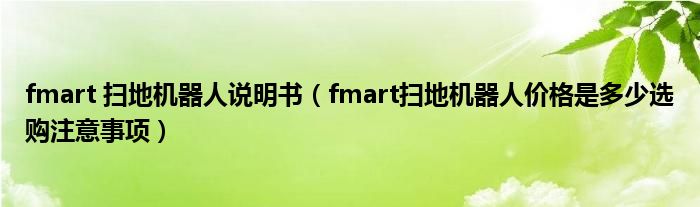 fmart 扫地机器人说明书(fmart扫地机器人价格是多少选购注意事项)