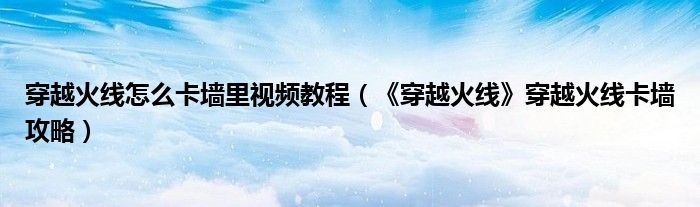 穿越火线怎么卡墙里视频教程(《穿越火线》穿越火线卡墙攻略)