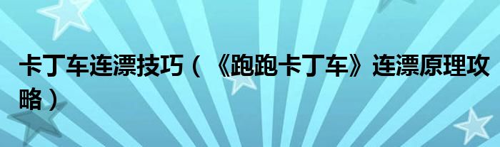 卡丁车连漂技巧(《跑跑卡丁车》连漂原理攻略)