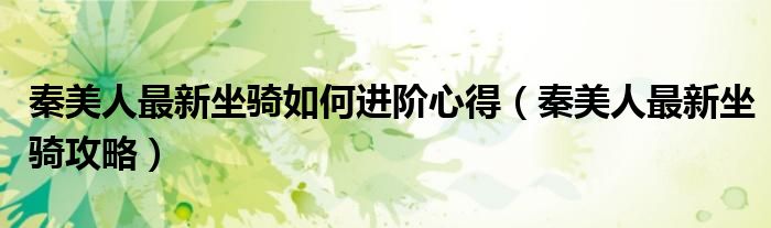 秦美人最新坐骑如何进阶心得(秦美人最新坐骑攻略)
