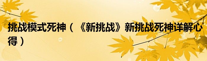 挑战模式死神(《新挑战》新挑战死神详解心得)