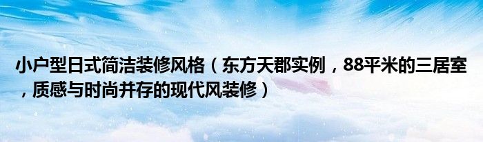 小户型日式简洁装修风格(东方天郡实例,88平米的三居室,质感与时尚并存的现代风装修)