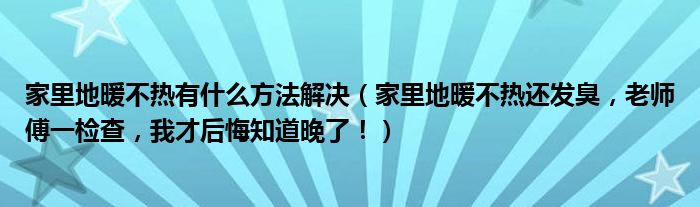 家里地暖不热有什么方法解决(家里地暖不热还发臭,老师傅一检查,我才后悔知道晚了!)