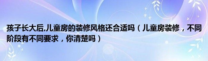 孩子长大后,儿童房的装修风格还合适吗(儿童房装修,不同阶段有不同要求,你清楚吗)