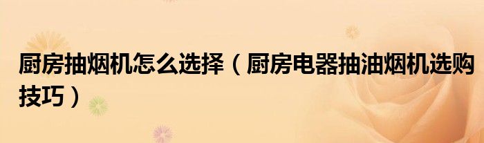 厨房抽烟机怎么选择(厨房电器抽油烟机选购技巧)