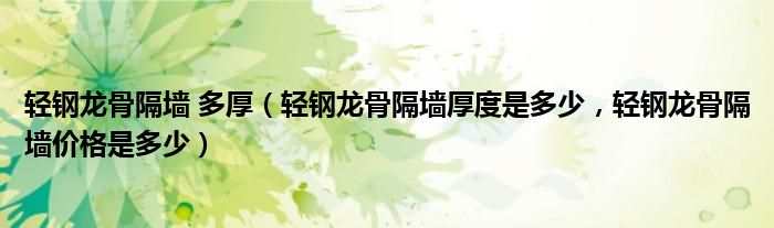 轻钢龙骨隔墙 多厚(轻钢龙骨隔墙厚度是多少,轻钢龙骨隔墙价格是多少)