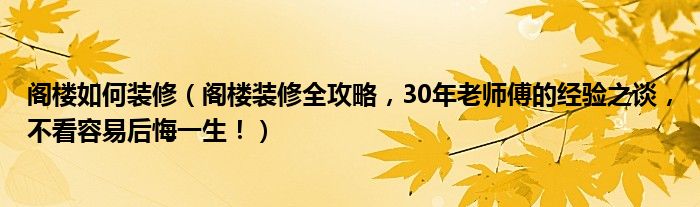 阁楼如何装修(阁楼装修全攻略,30年老师傅的经验之谈,不看容易后悔一生!)