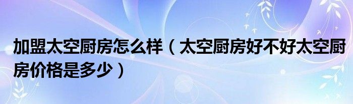 大家好,今天乐乐来为大家解答以上问题。加盟太空厨房怎么样,太空厨房好不好太空厨房价格是多少很多人还不知道,现在让我们一起来看看吧!
