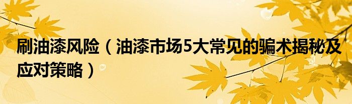 刷油漆风险(油漆市场5大常见的骗术揭秘及应对策略)