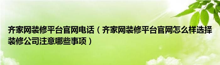 齐家网装修平台官网电话(齐家网装修平台官网怎么样选择装修公司注意哪些事项)