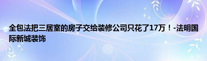 导读 大家好,今天乐乐来为大家解答以上问题。全包法把三居室的房子交给装修公司只花了17万!-法明国际新城装饰很多人还不知道,现在让我们一起