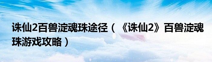 导读 大家好,太太来为大家解答以上问题。诛仙2百兽淀魂珠途径,《诛仙2》百兽淀魂珠游戏攻略很多人还不知道,现在让我们一起来看看吧!1、诛仙2