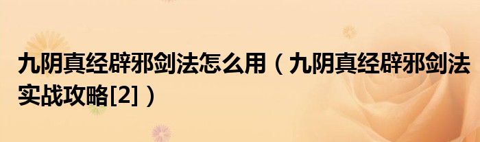 九阴真经辟邪剑法怎么用(九阴真经辟邪剑法实战攻略[2])