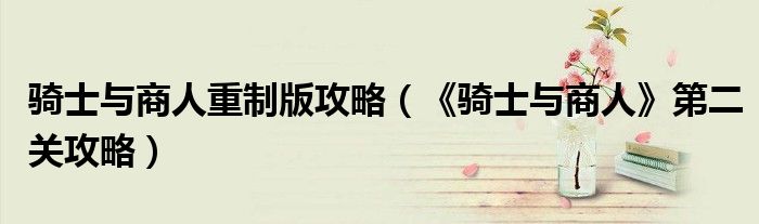 骑士与商人重制版攻略(《骑士与商人》第二关攻略)