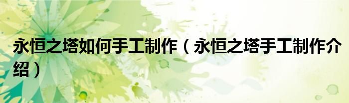 永恒之塔如何手工制作(永恒之塔手工制作介绍)