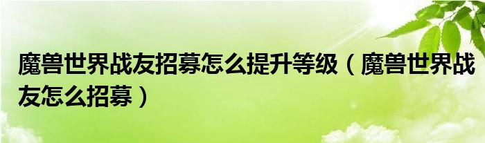 魔兽世界战友招募怎么提升等级(魔兽世界战友怎么招募)