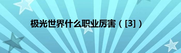 大家好,太太来为大家解答以上问题。极光世界什么职业厉害,[3]很多人还不知道,现在让我们一起来看看吧!