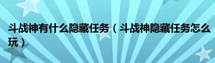 斗战神有什么隐藏任务(斗战神隐藏任务怎么玩)