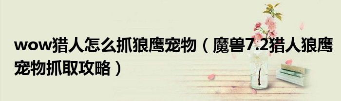 导读 大家好,太太来为大家解答以上问题。wow猎人怎么抓狼鹰宠物,魔兽7 2猎人狼鹰宠物抓取攻略很多人还不知道,现在让我们一起来看看吧!1、魔