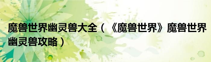 导读 大家好,太太来为大家解答以上问题。魔兽世界幽灵兽大全,《魔兽世界》魔兽世界幽灵兽攻略很多人还不知道,现在让我们一起来看看吧!1、魔