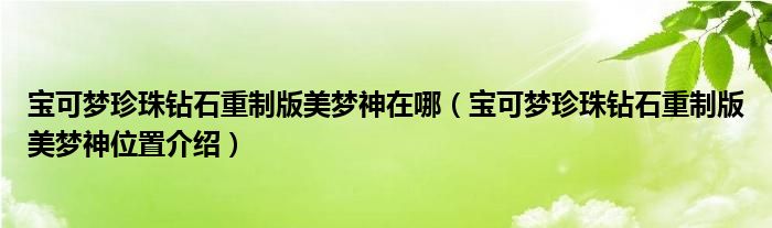 宝可梦珍珠钻石重制版美梦神在哪(宝可梦珍珠钻石重制版美梦神位置介绍)