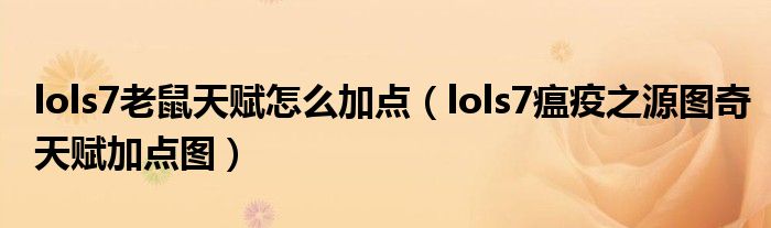 lols7老鼠天赋怎么加点(lols7瘟疫之源图奇天赋加点图)